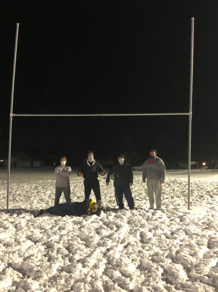 As Old Gaelic players continue to look for ways to stay together safely amongst the pandemic, a snow-covered pitch was not enough to curtail a night of hoops and grilling at The Shed.